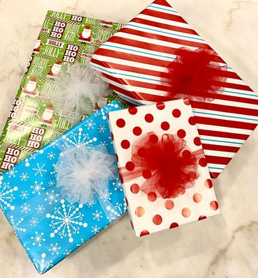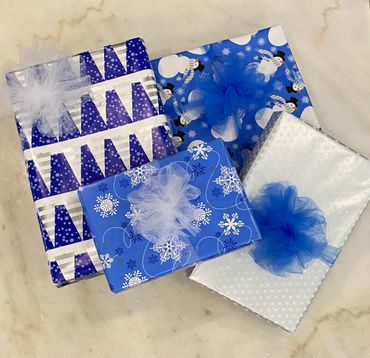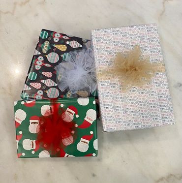 At your appointment I will inventory your gifts and we will confirm the details for each gift tag (name spelling for the giver and receiver) as well as the Wrapping Paper and Bow Package that you would like. You will sign the Agreement and off you go! I will wrap your gifts and contact you when they are ready for pickup. I will provide you with a detailed list so you know what item is wrapped inside of each package and ensure that all items are accounted for. Make your payment via the secure link in your Agreement, or in-person by credit card. Viola! You are ready to give gracefully!